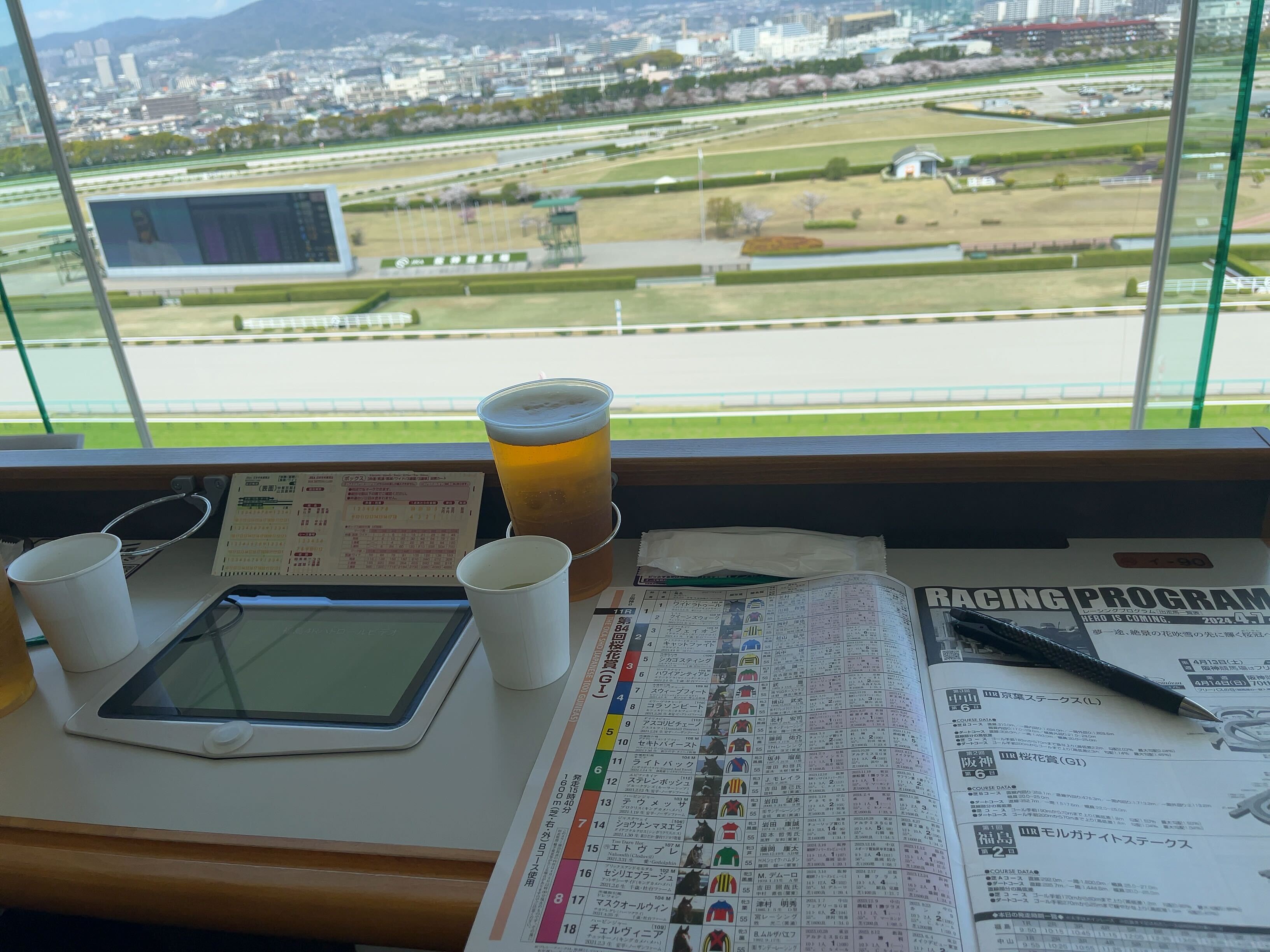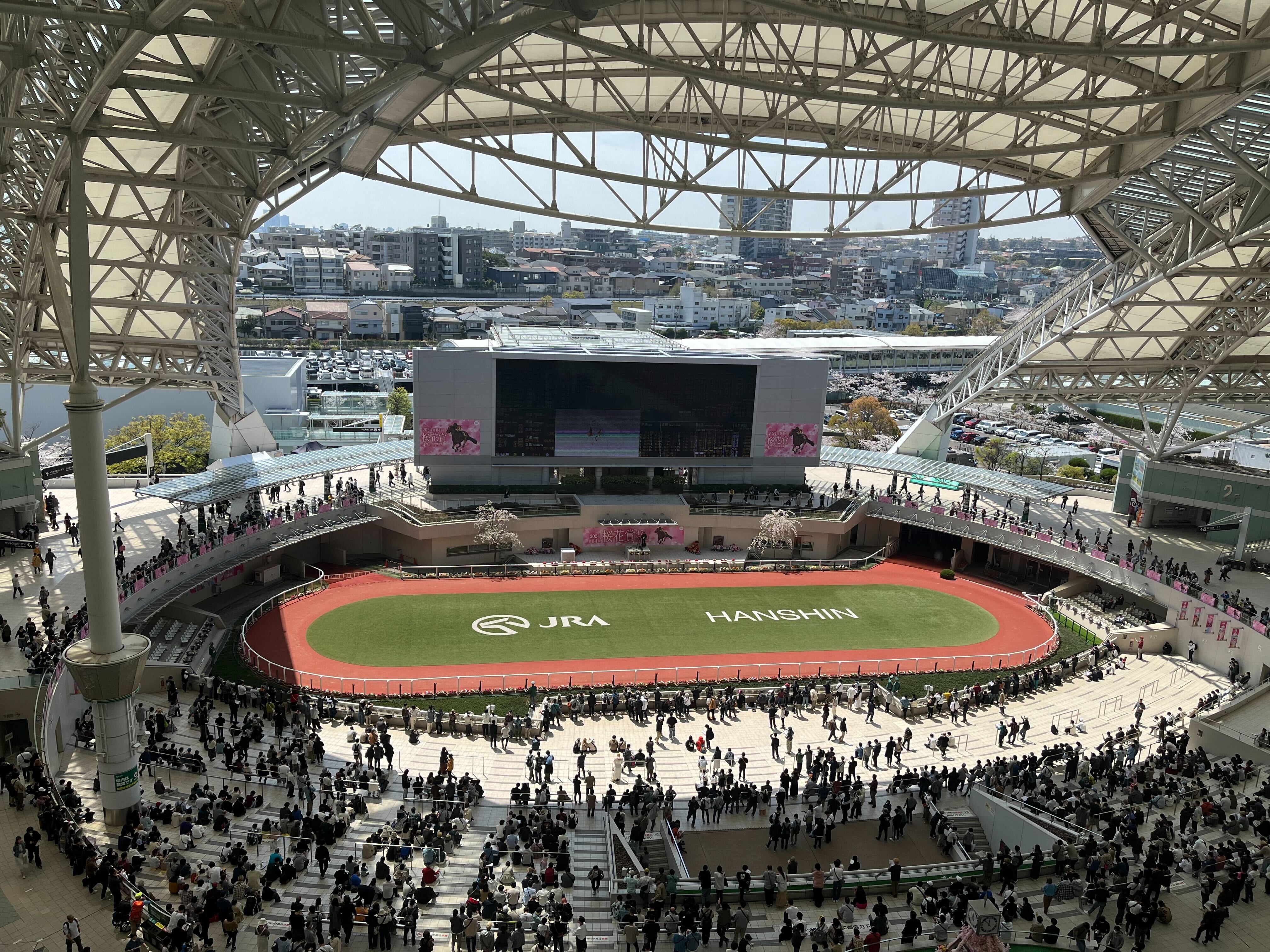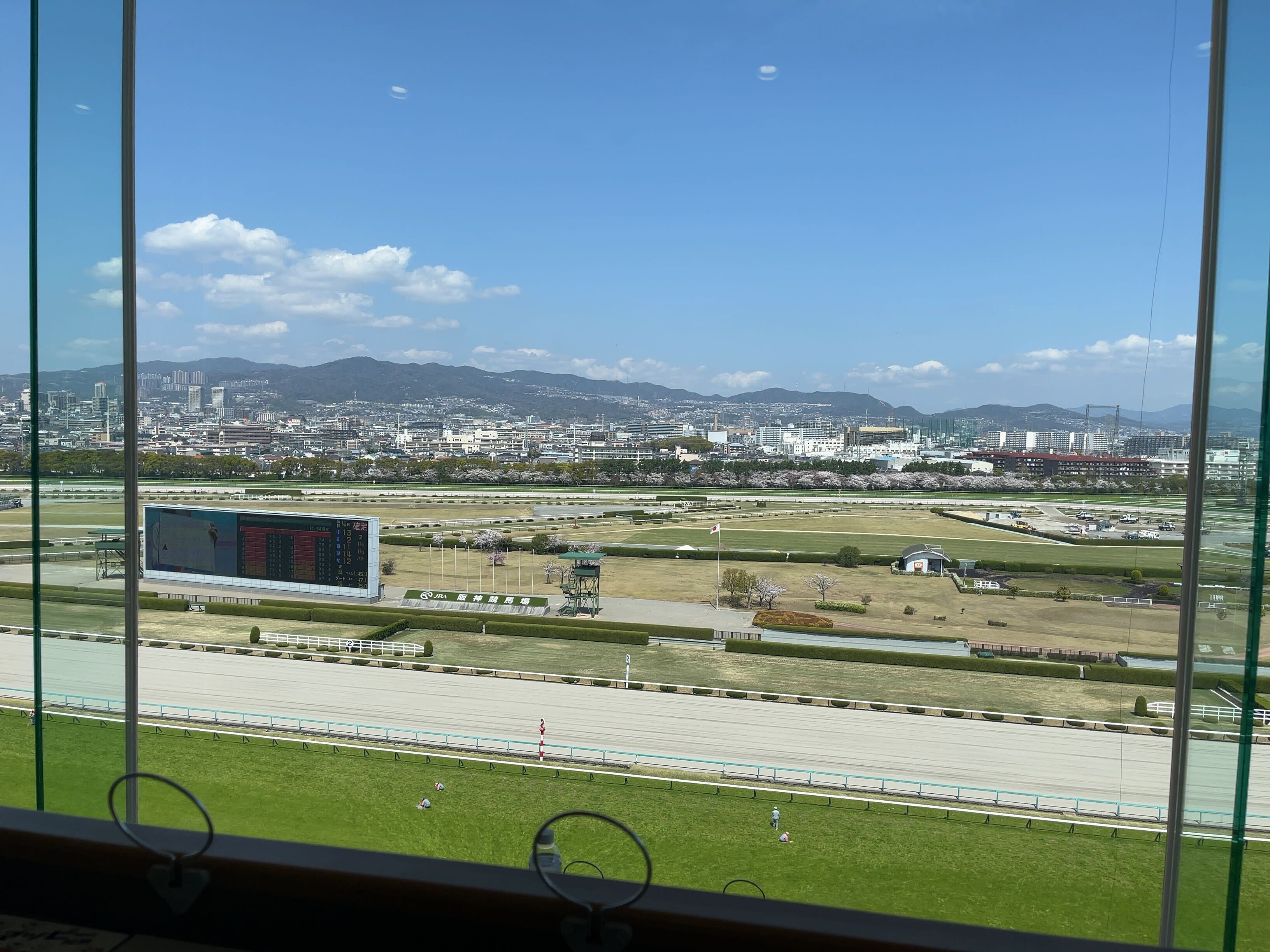 エレベーター出てすぐ、窓からパドックが綺麗に見えました。