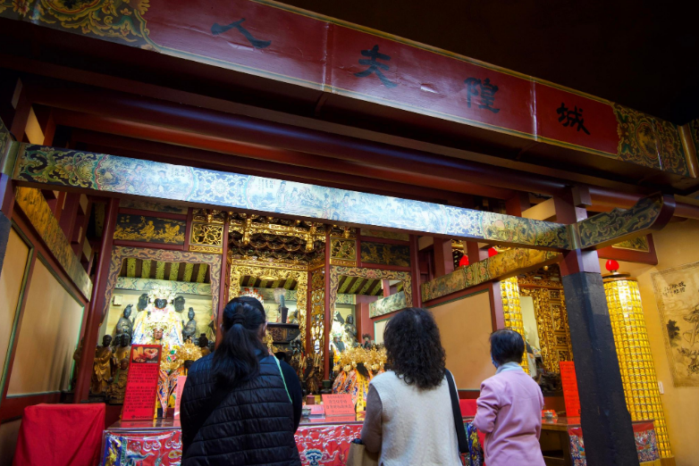 スタッフの方が丁寧に参拝順序を教えてくれます。まず天公(天の神様)、城隍爺(城隍神)、そして月下老人の順にお参りします。