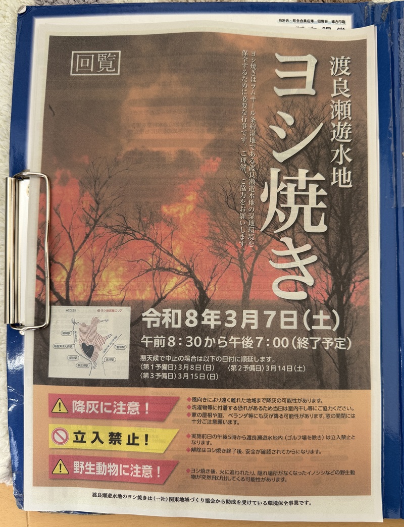 ヨシ焼きは、渡良瀬遊水地で行われる伝統的な野焼き行事です。