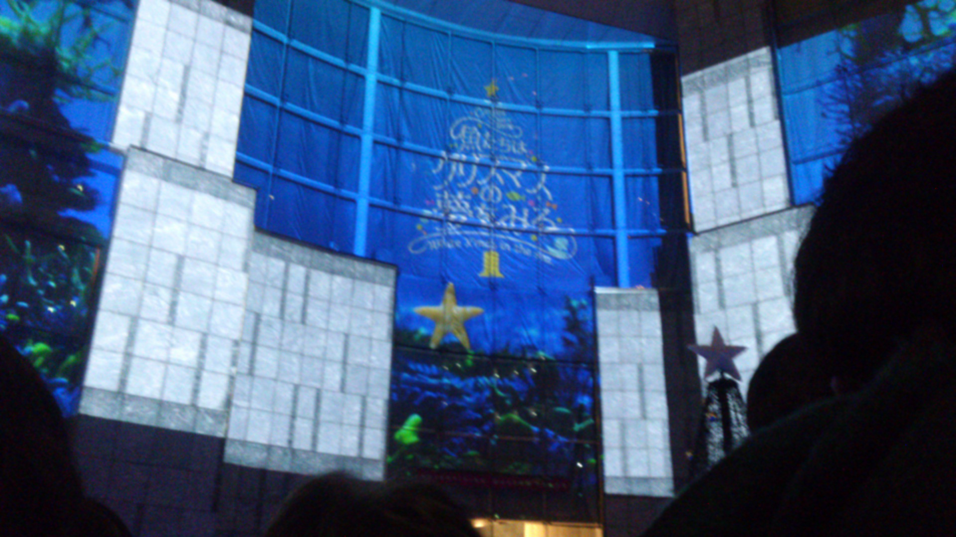 昔海だった汐留にちなんで、海中をモチーフにした映像とイルミネーションになっているようです