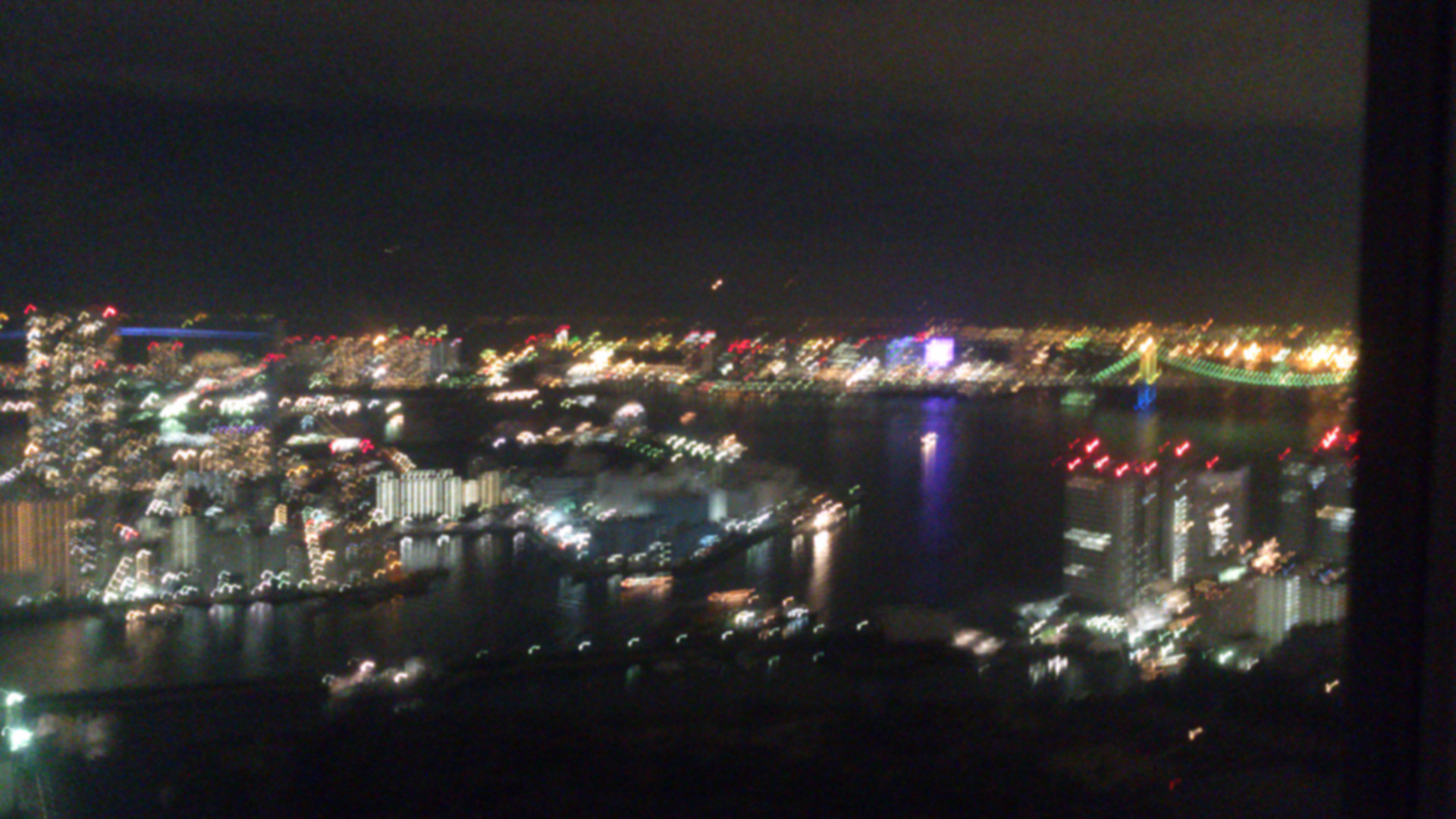 階段下のスペースのみだったので、人が溢れてなかなか窓際まで行けませんでしたが、東京湾を一望でき