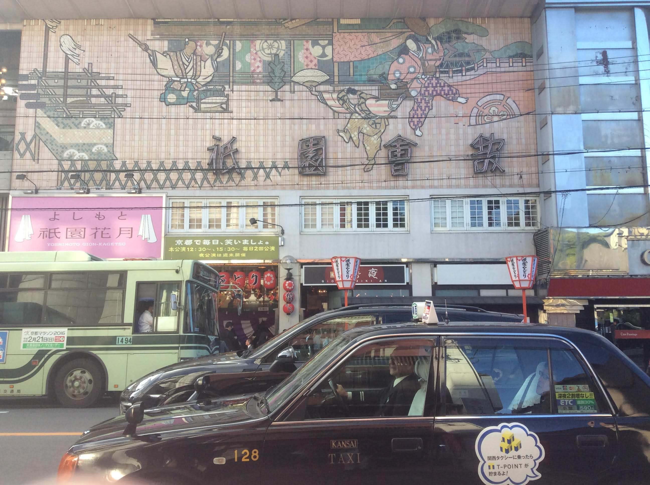 夜の祇園で遊ぶ時、たまに祇園会館前で待ち合わせをしたりしますが、お昼に改めてみると