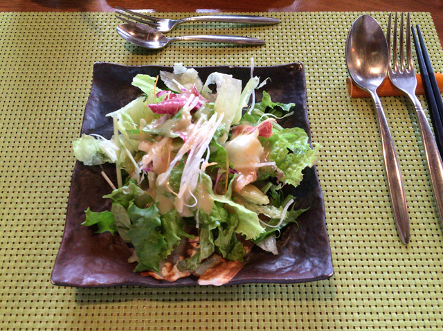 しばらくするとサラダが来た来た。シャキシャキして新鮮で美味しい。
