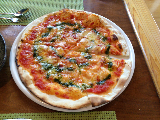 続いてピッツア。マルゲリータです。予想よりデカかった。そういえばパスタも来るんだったな。食べきれるかな。