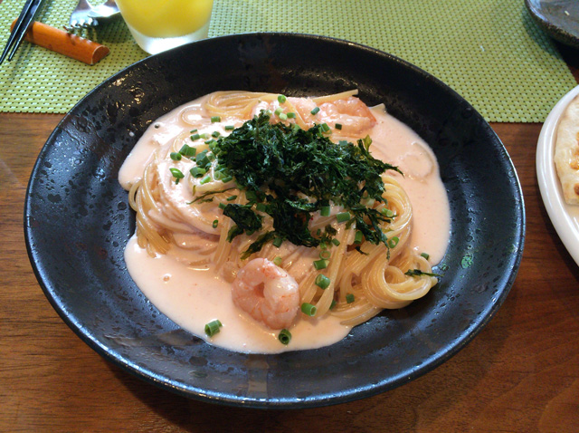 連れが注文したパスタは「海老と明太子クリームのスパゲッティ」。これまた明太クリームが何とも言えない美味しさ!