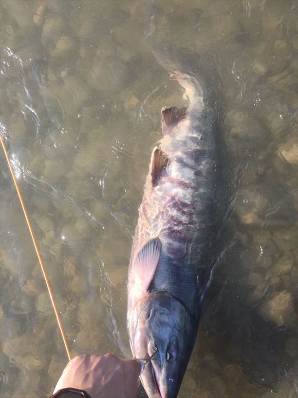 魚の写真が1枚もないのは寂しいので、以下友人の釣り上げたシャケ写真でも。