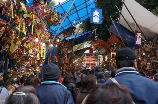 毎年12月10日に行われるようで、自営業や、会社の繁栄を願う人が縁起物の熊手を買い求めに集まってきます。