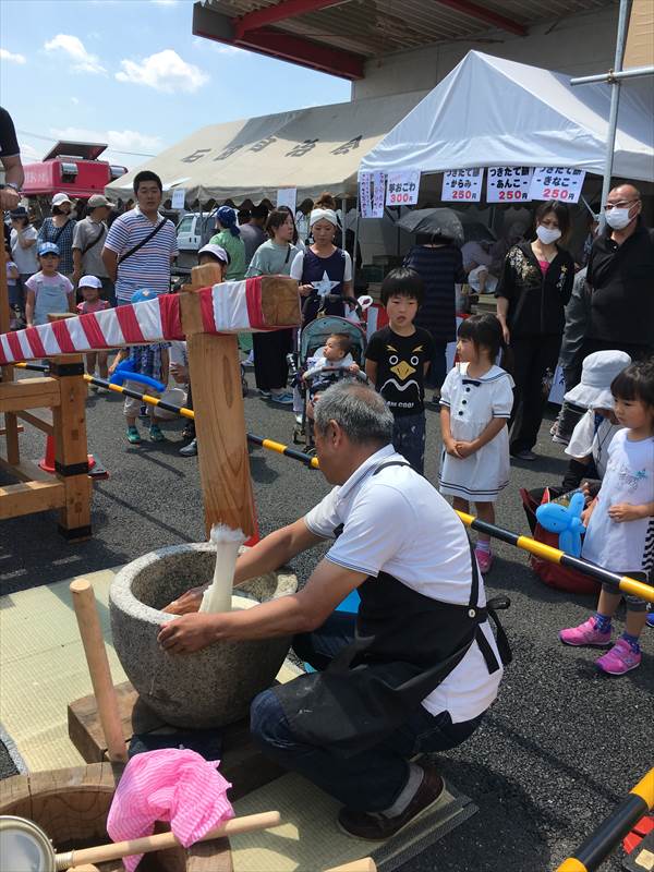 変な装置?で餅つきしたり出店で焼きそばやら餅やら。