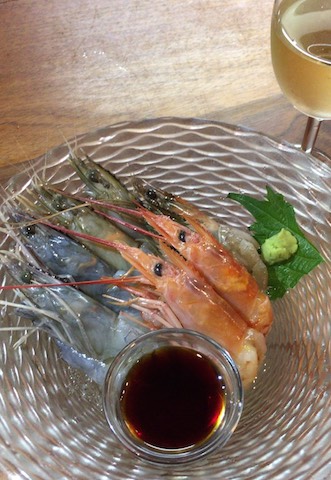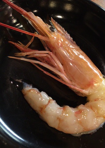 まずは赤エビから。食べやすいように尻尾までとってくれるのでそのままかぶりつくだけでOK。