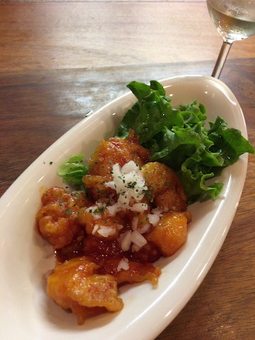 合わせたお酒は白ワイン、イタリアのソアヴェ。
