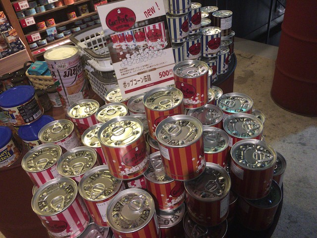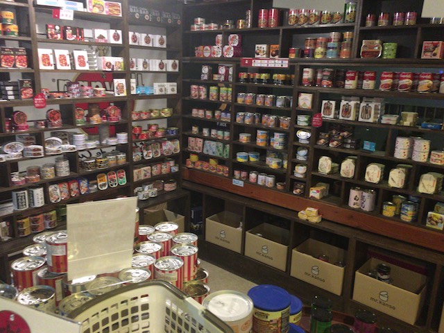 ここではドリンク注文後、棚一面に並んでいる缶詰からチョイスすると、