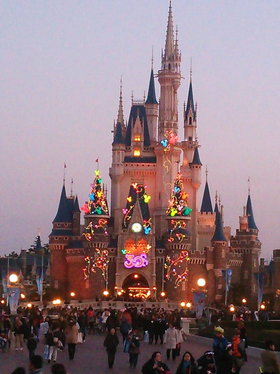 写真は30周年仕様のシンデレラ城と入場ゲートです。