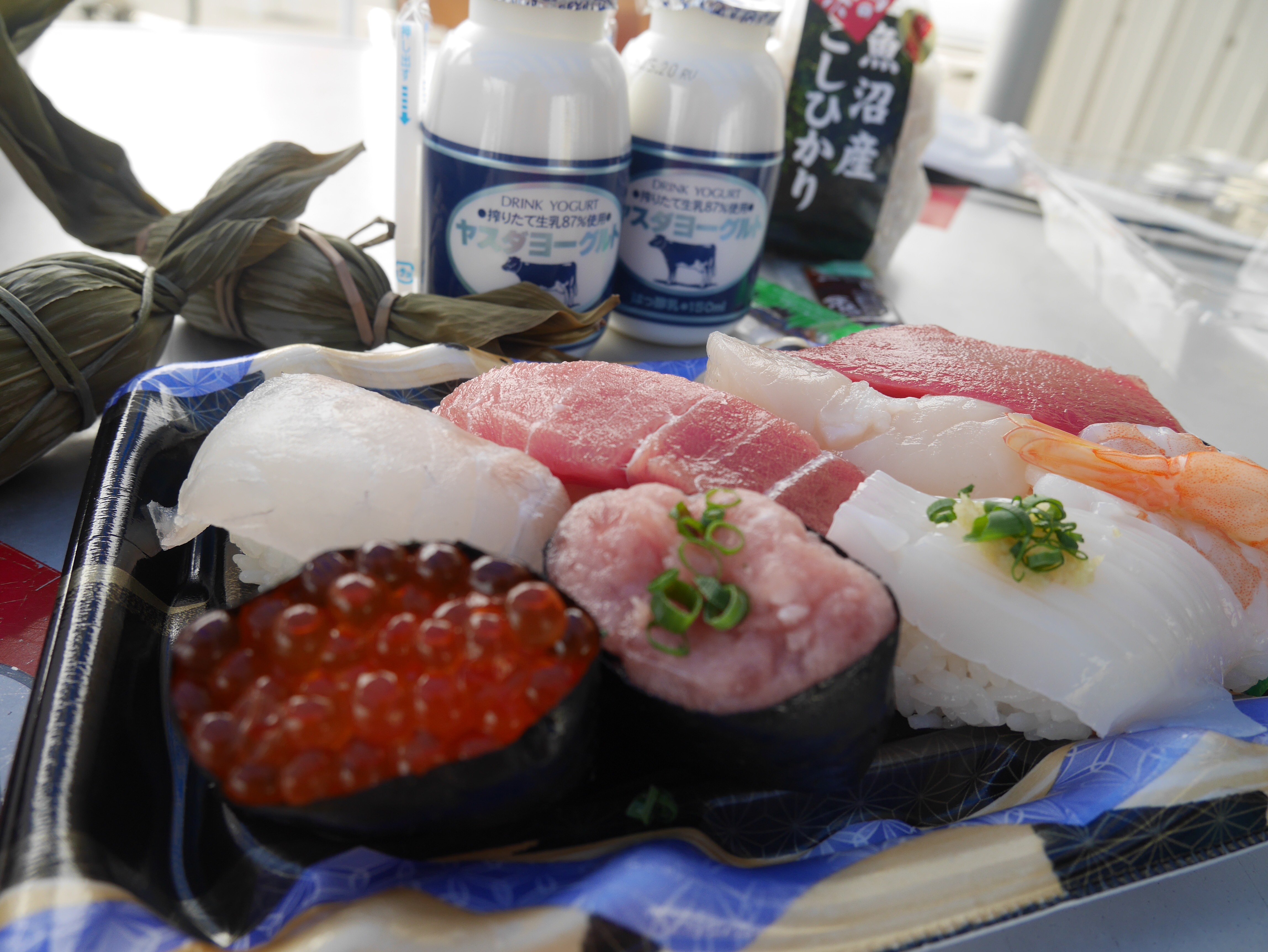 私たちは市場で購入したお寿司・お刺身、その他特産品をその場で頂きました。