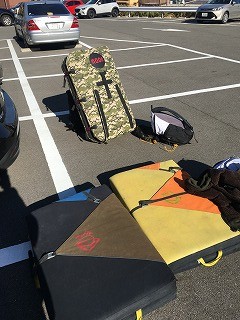 こんな感じのマットを背負って岩場までアプローチ。