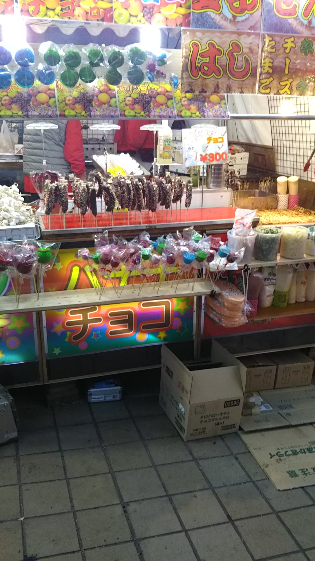 さらには青色(!?)のチョコがかかったチョコバナナ等々、、、物珍しいものもあり、