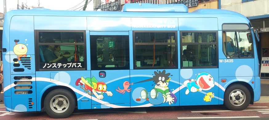 道中乗っていたバスは、メインがパーマンで外装にドラえもん・パーマン・コロ助がいました。他にコロ助仕様とオバQ仕様が走っているのを見かけました。