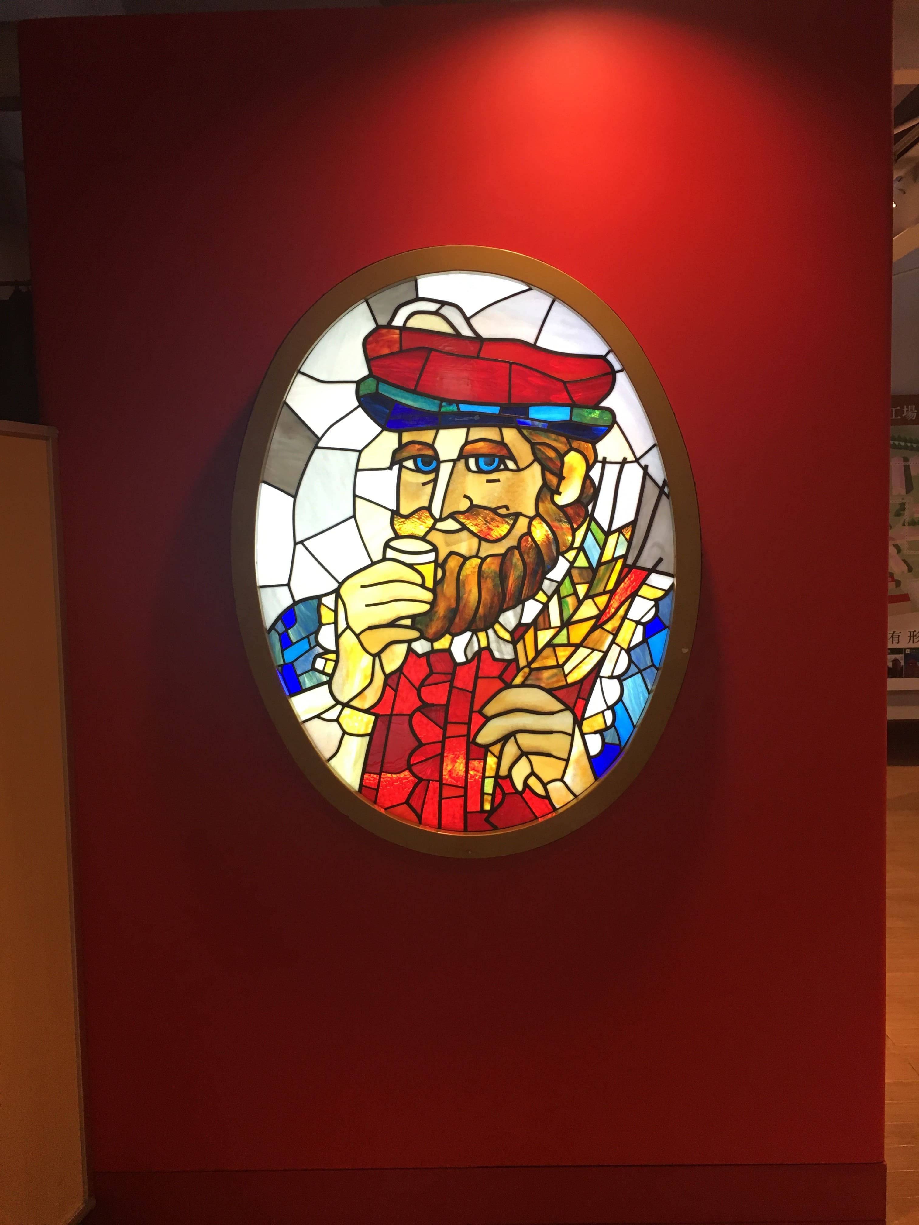 こちらにはステンドグラスのようなものに描かれたニッカウィスキーのシンボルでもあるおじさまがお迎えくださいました。