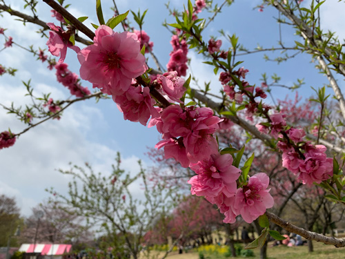 「桃まつり」とは、江戸時代初期に古河藩主・土井利勝が江戸で家臣の子供たちに拾い集めさせた桃の種を古河に送り、農民に育てさせたのが始まりです。領地では燃料となる薪が乏しかったことから成長が早い上、果実は食料になる桃が選ばれたそうです。