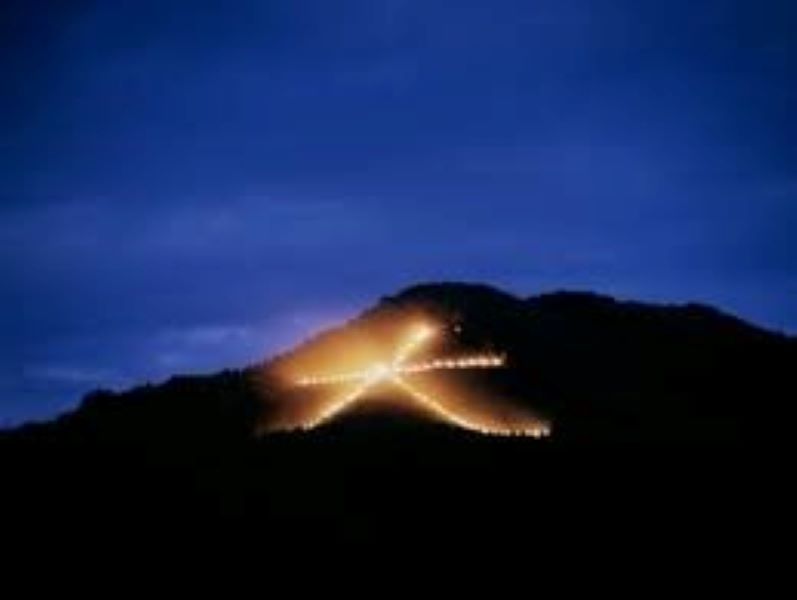 毎年、8月16日夜、京都の大文字山、西山、東山、左大文字山、曼荼羅山にそれぞれ「大文字、妙法、船形、鳥居、左大文字」の文字を模した形で点火し送り火として先祖を見送ります
