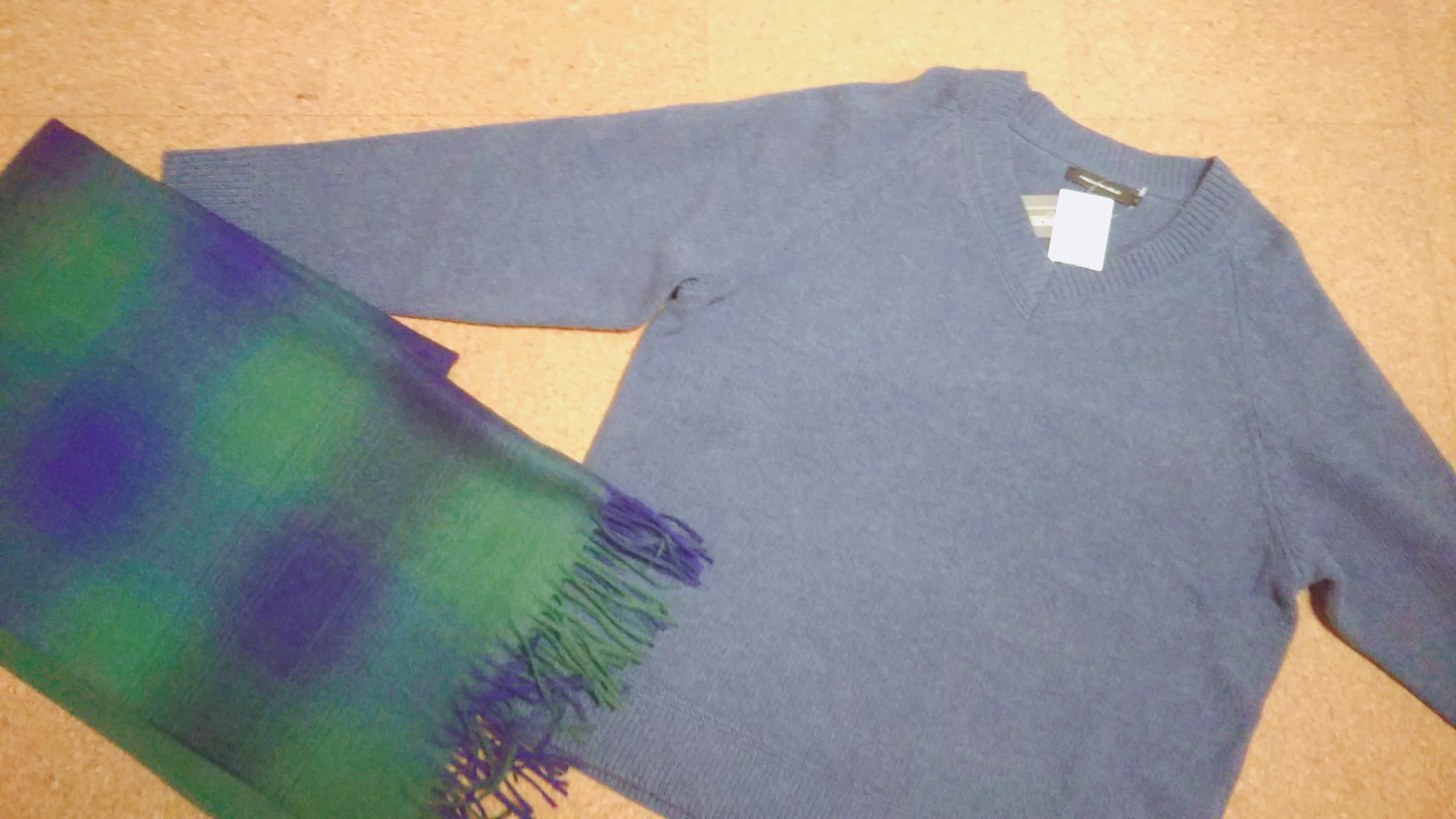 会計にいくと、「もう1点買うとどちらも30%OFFになりますよ♪♪♪」と店員さんに言われ、その言葉に押され、もう一度店内を見渡すとちょうどいい青寄りのネイビーニットを見つけて追加でお買い上げしました。