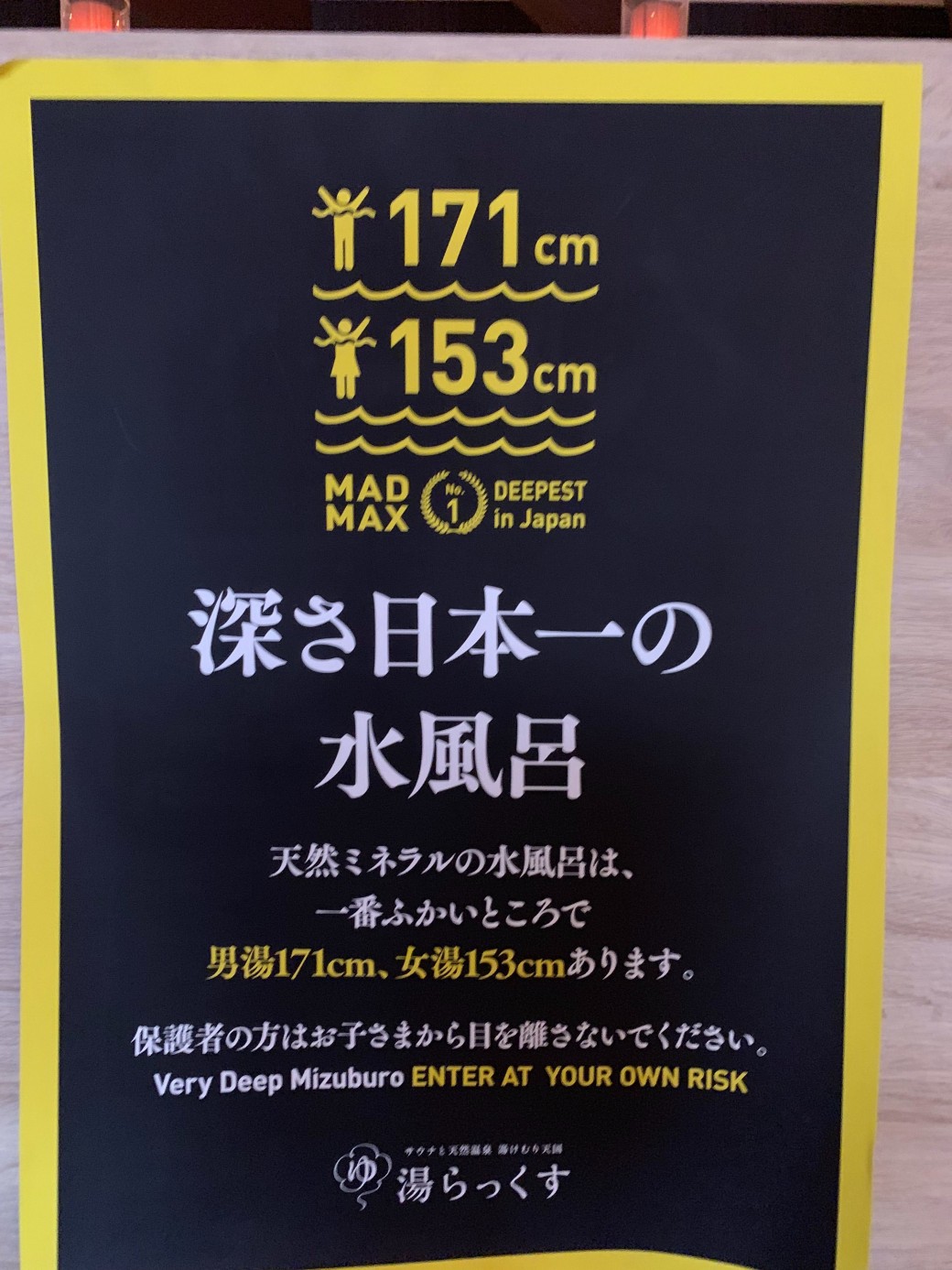 水風呂にはマッドマックスボタンという、押したら水の塊が頭の上から落ちてくる、かなり謎な設備もあり!!
