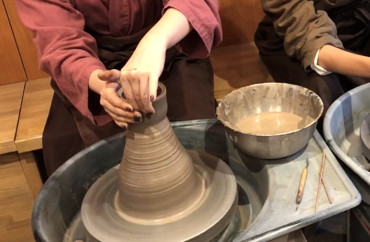 八坂塔のすぐ近くにあるお店で、レクチャーしていただきながら湯飲み茶わんを作っていきました。