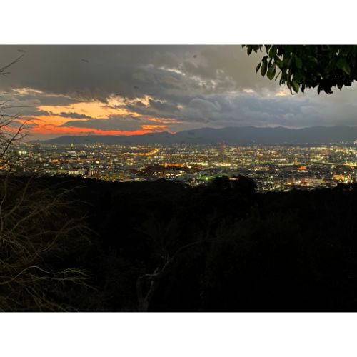 ここまで登る頃にはすっかり膝が笑っていましたが、黄昏の京都の街が本当に壮観で、