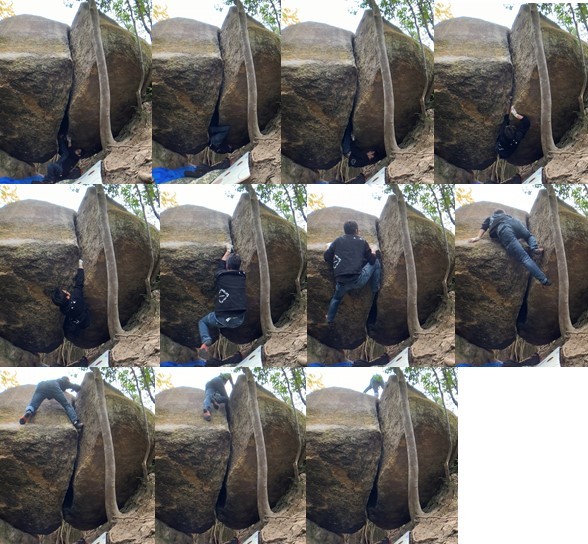 岩の裂け目に体を潜り込ませて登る珍しいタイプ。