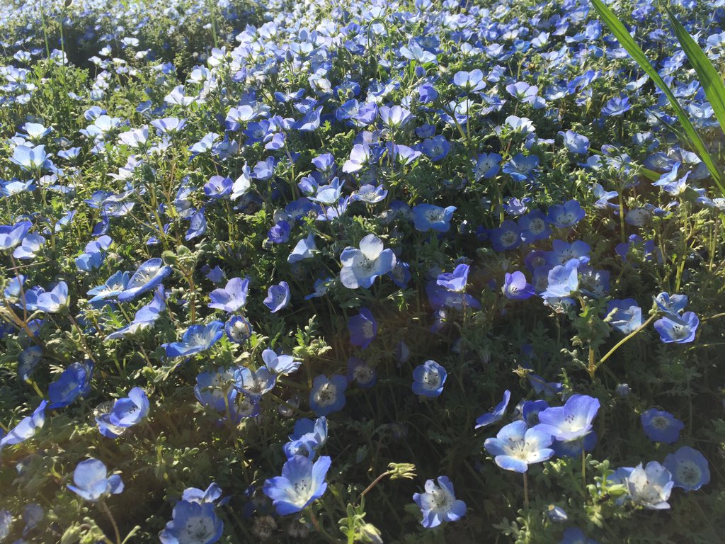 この一面を飾るネモフィラ畑の様子は、本当に美しいという一言ではとても表せないほどに幻想的で、