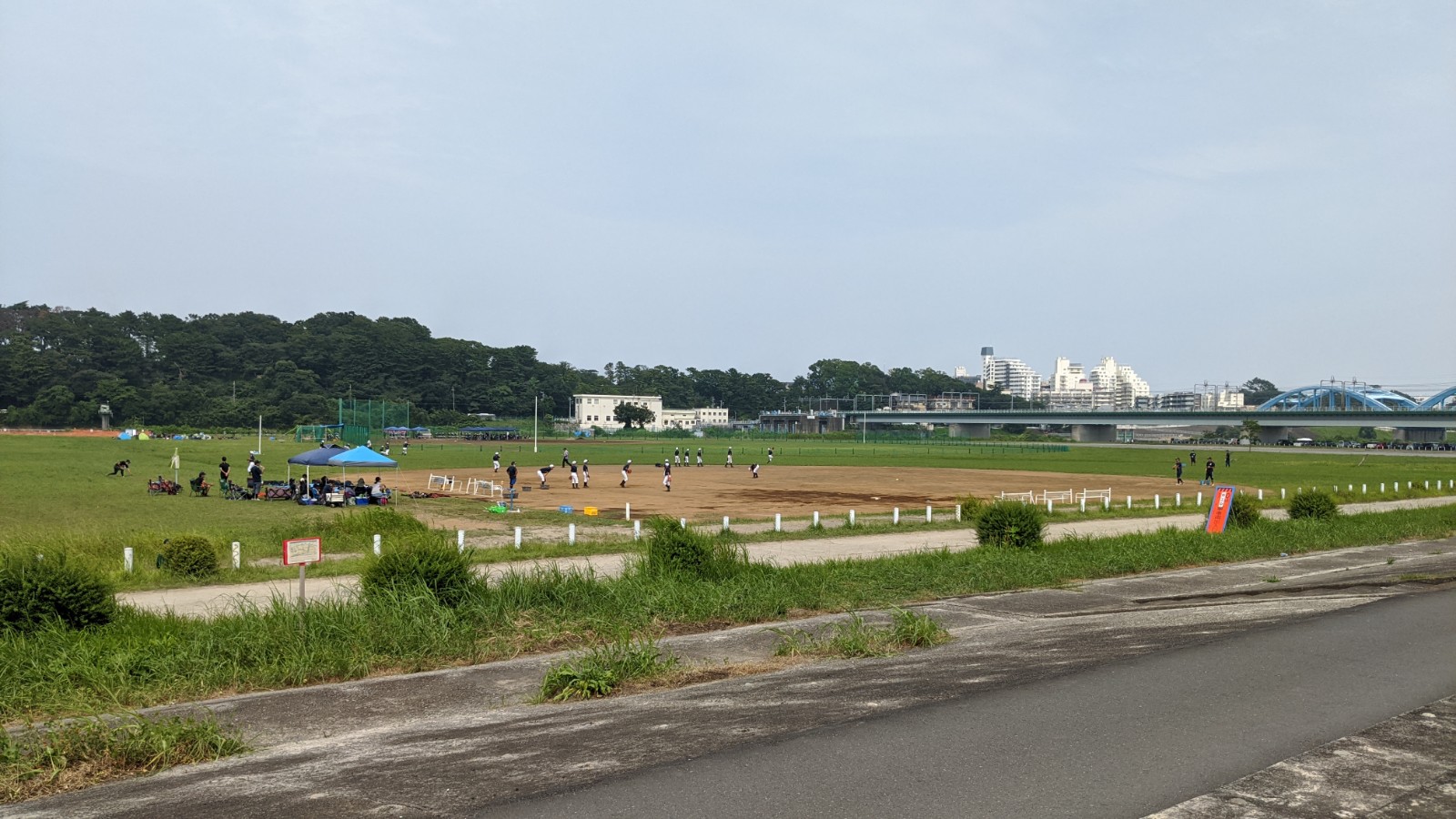 お昼を食べて移動しますが、この日は最高気温36度で、日が高くなると走っていても風が暑く、急激に体がだるくなってきたので、土手で休憩。