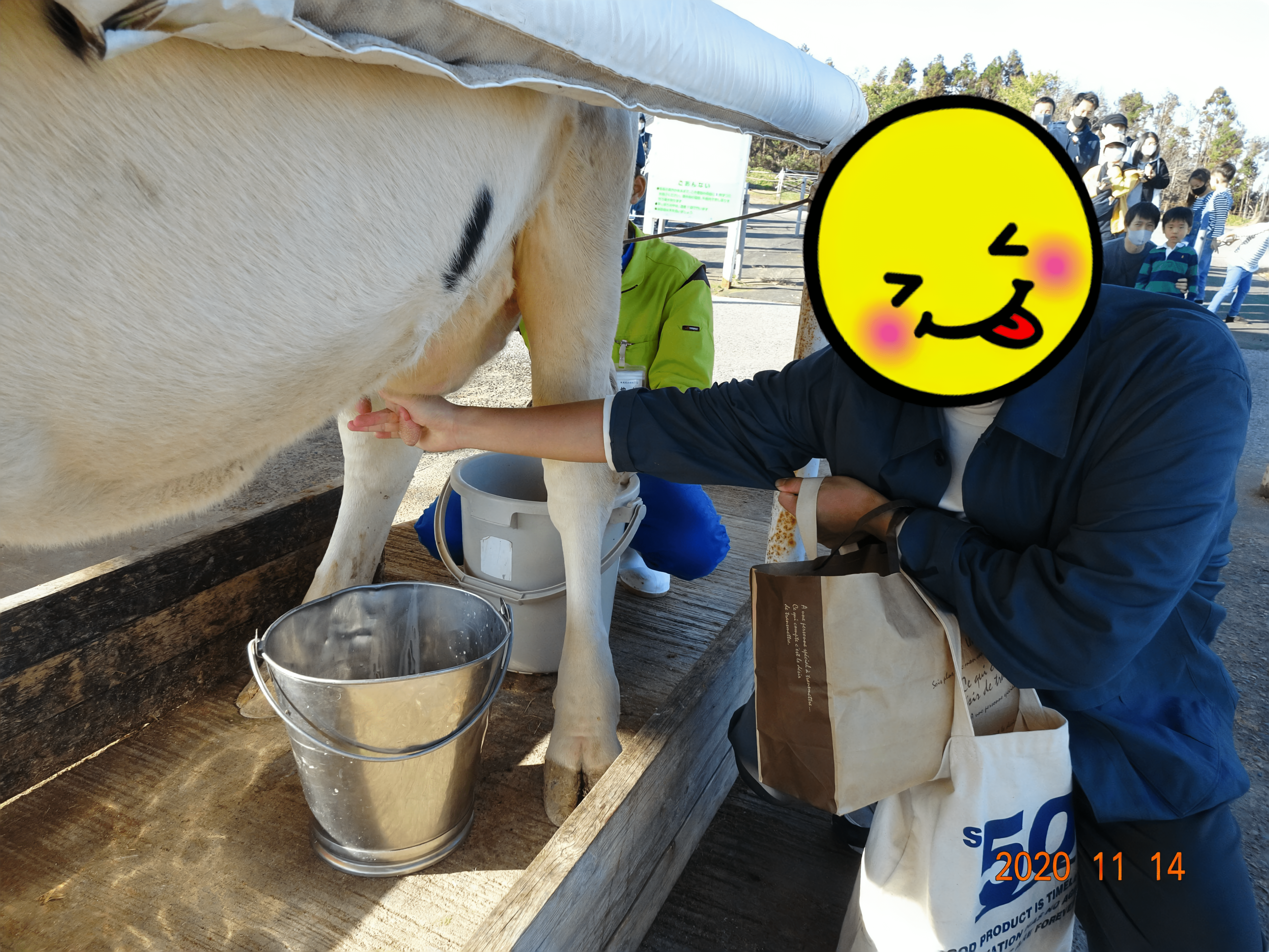 おなかもいっぱいになったところで今度は牛さんの乳搾り体験をしてきました。