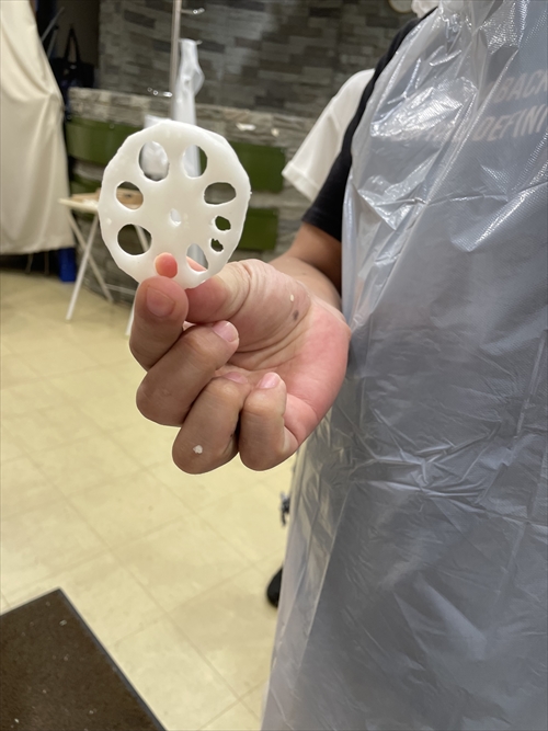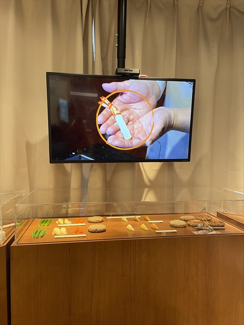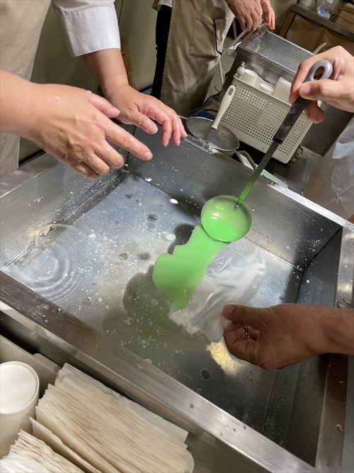 ちなみに食品サンプルはロウ(蝋)でできており、お湯の中で作る感じです。