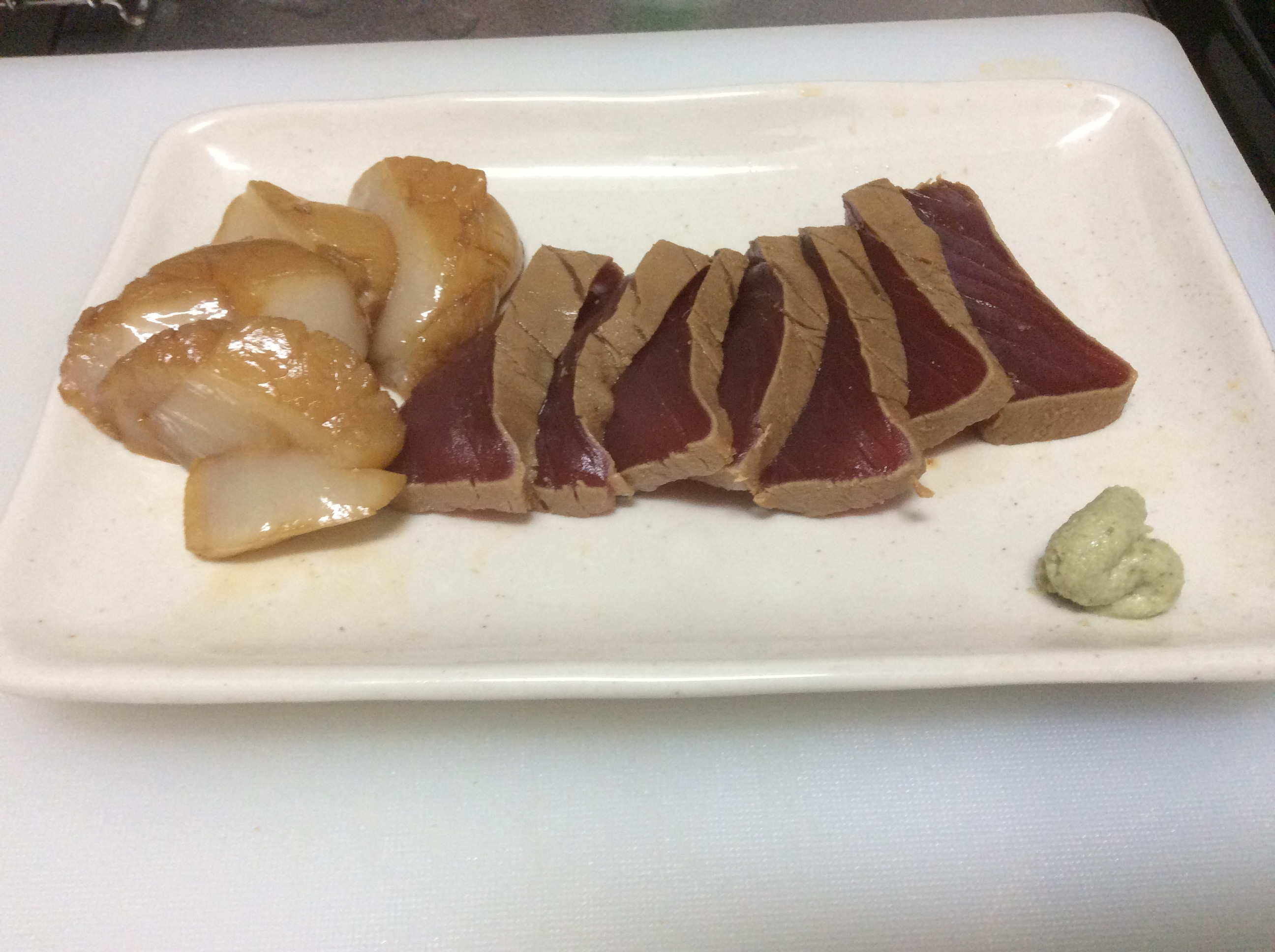 そして、マグロの漬けと、同じように醤油漬けにしたホタテです。