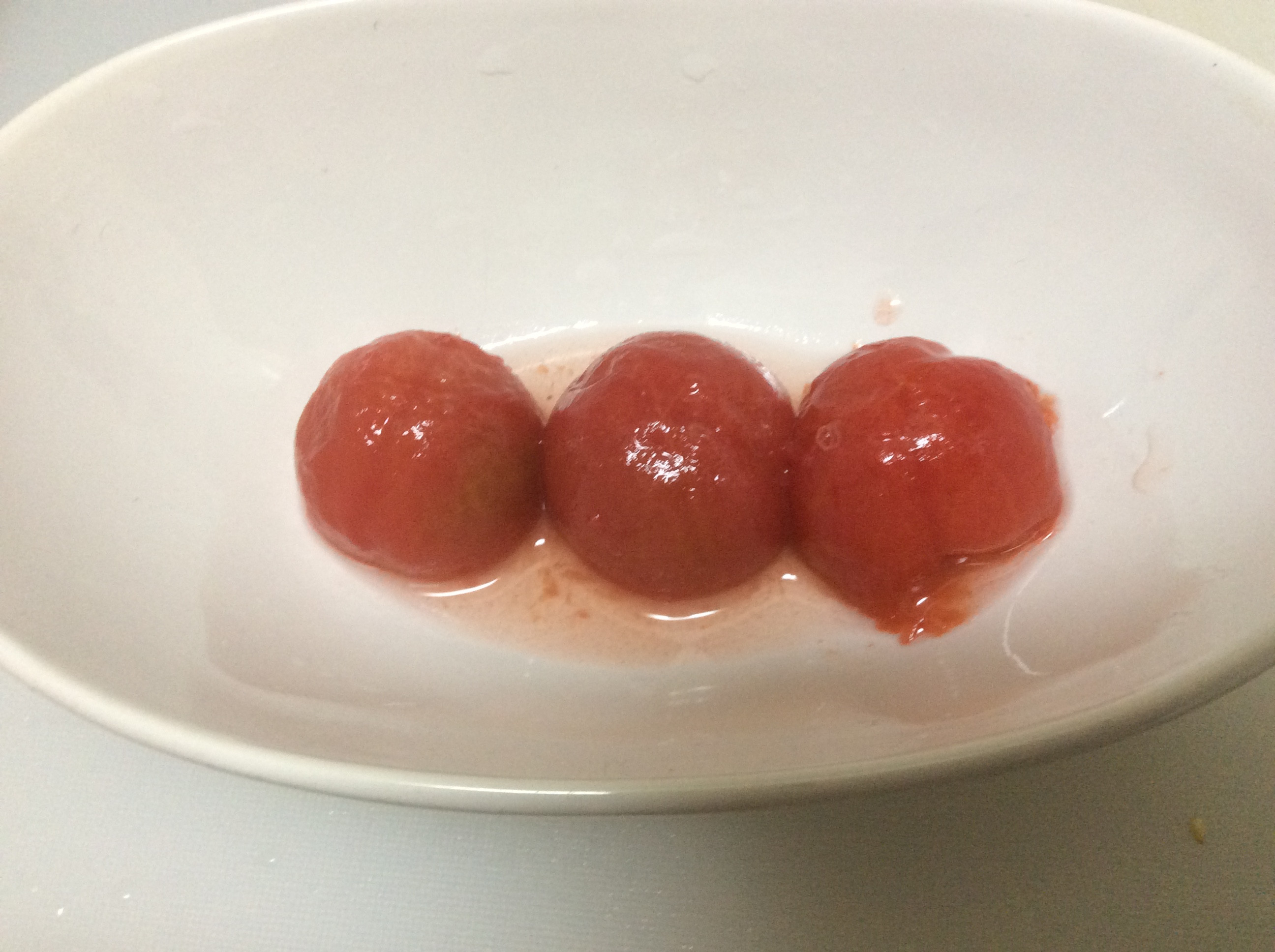 これは、梅と酢、その他でミニトマトを湯剥きしたものを漬けたもので