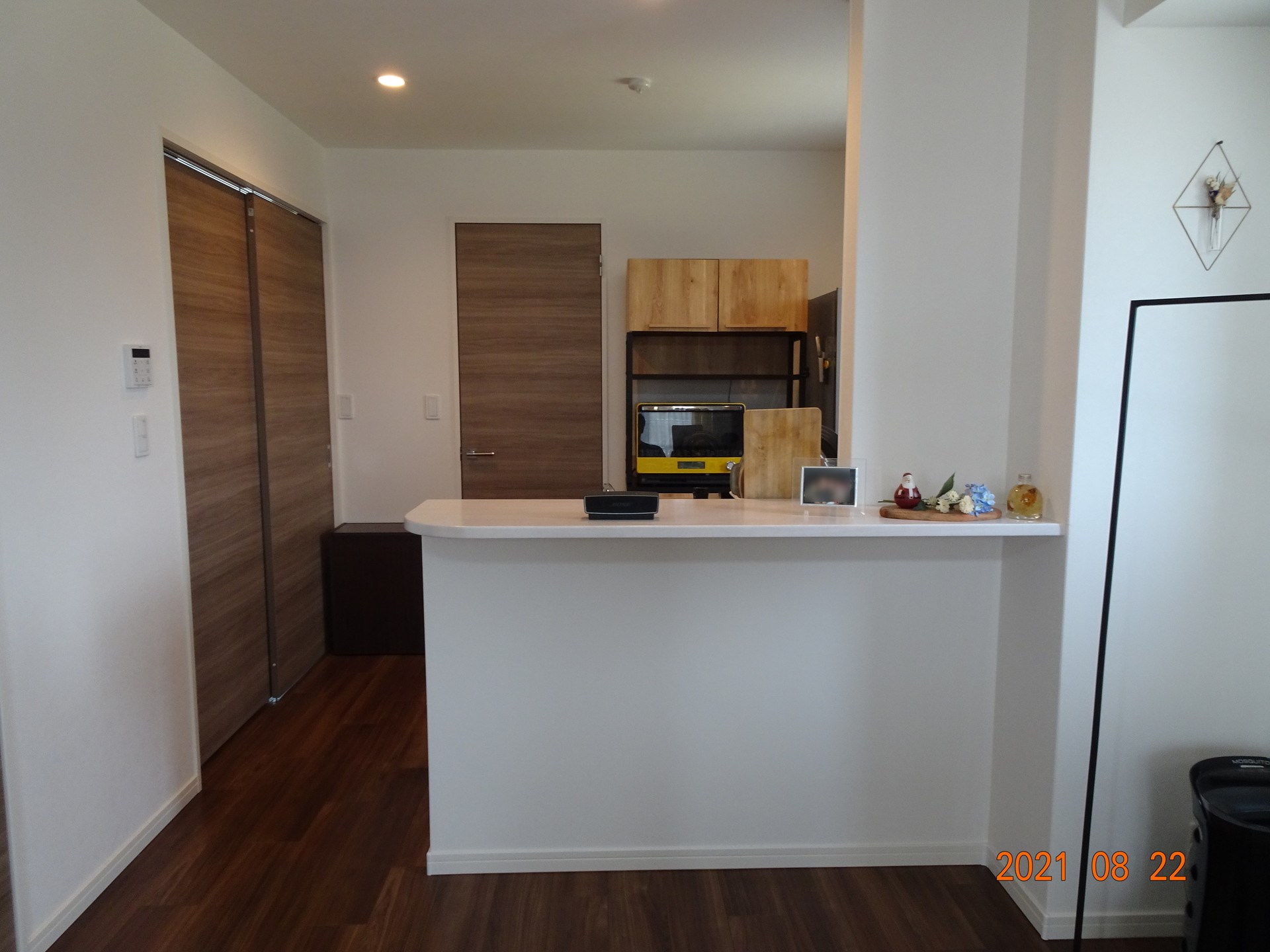 このままでも十分きれいなキッチンですが、きゃさりんとしては白い部分が多くて少し寂しい印象でした。