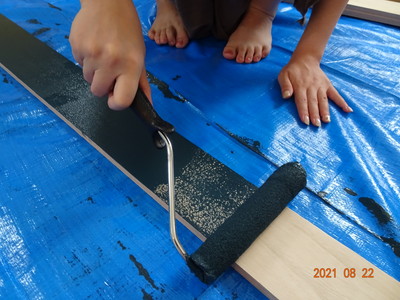次に実際に見える部分の木材にペンキで色を付けていきます。