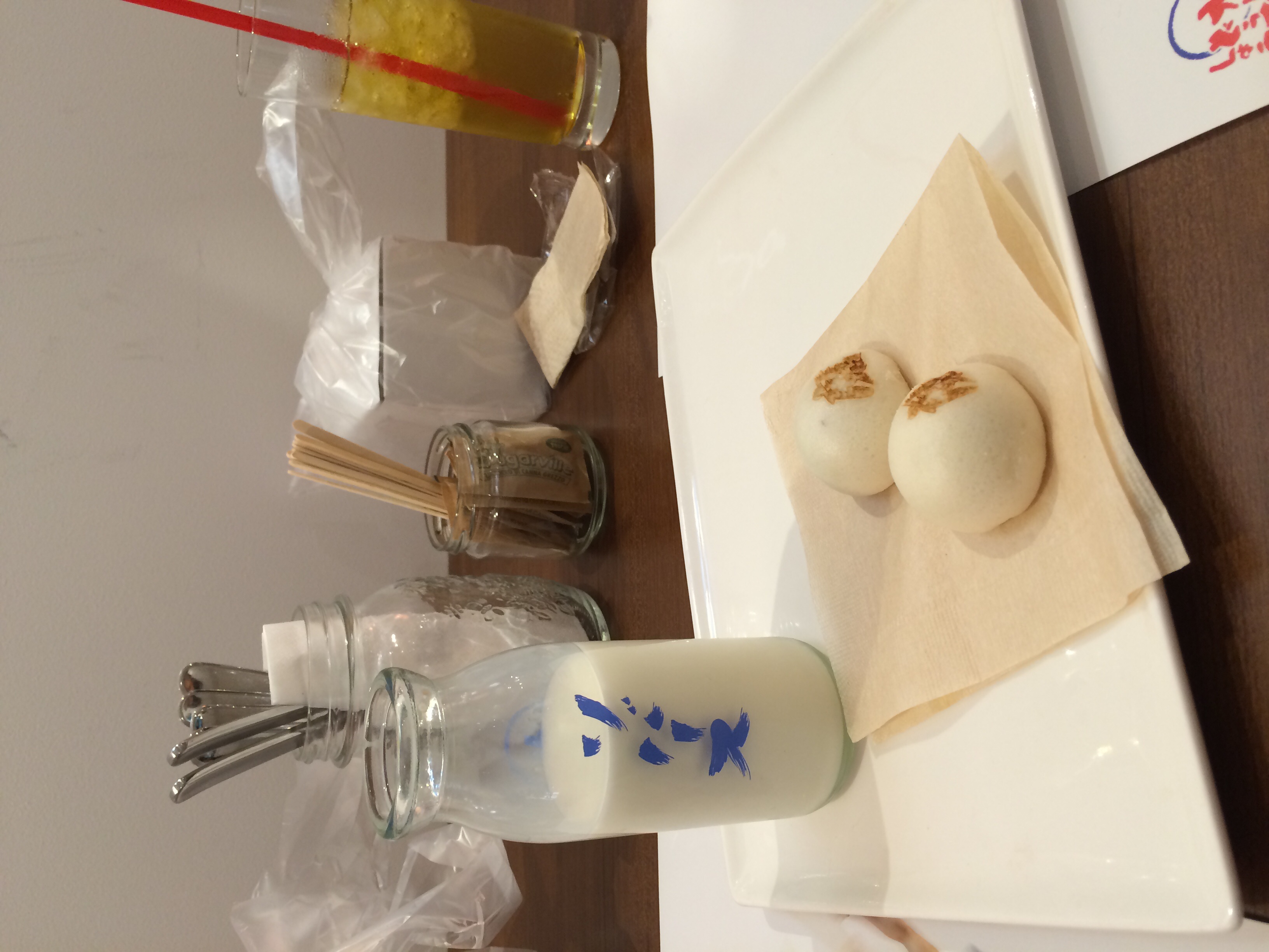 また、おとなりに座っていた女性から、食べきれないからと、おまんじゅうと牛乳のセットをいただきました。