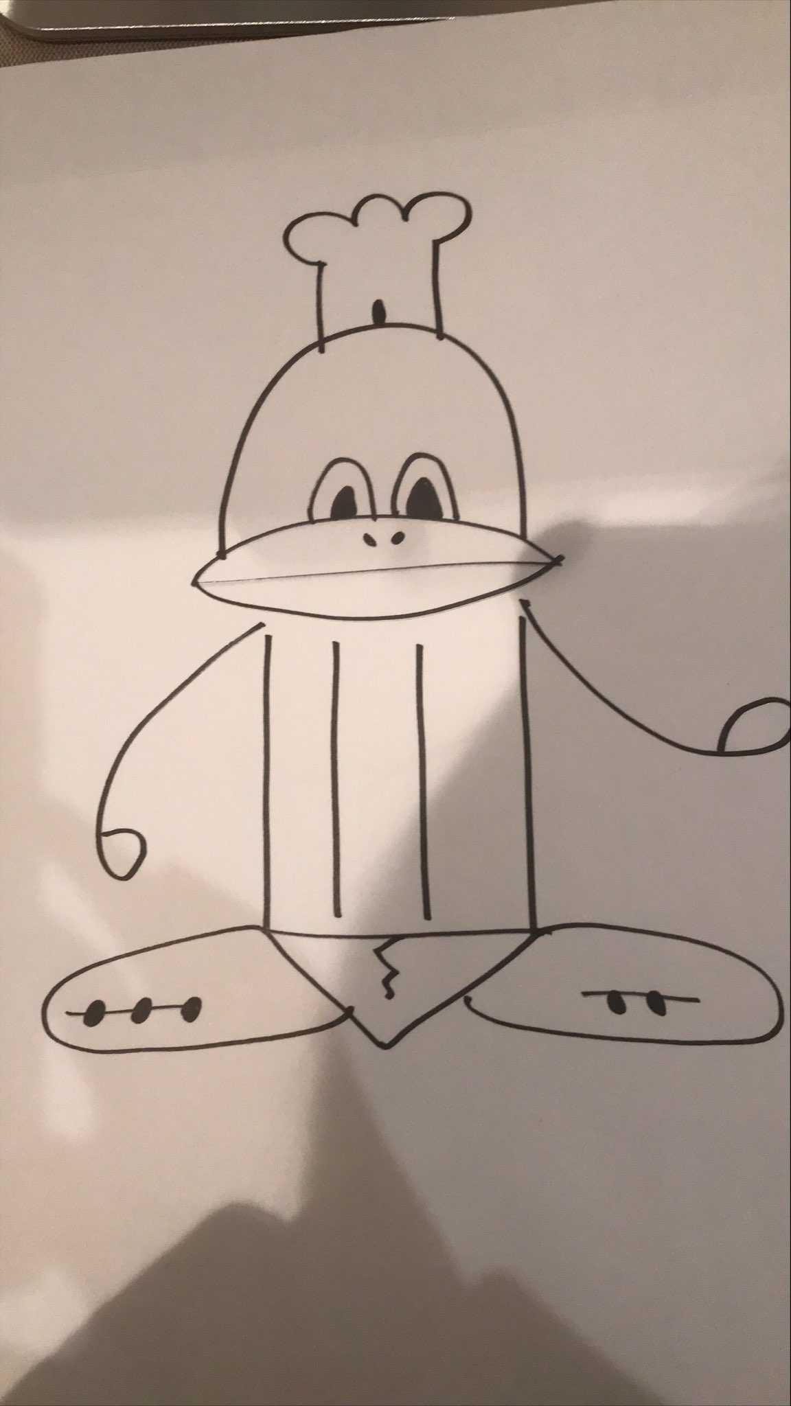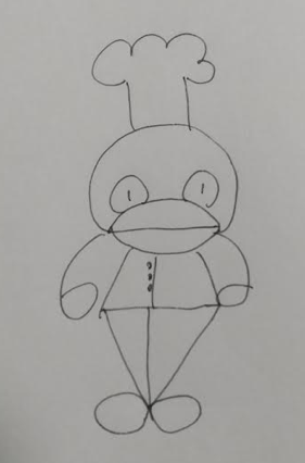 さて、このあまりにも著名な絵描き歌ですが、大会参加者の友人たちより「実はうろ覚えかもしれない」という声が聞かれたので、私が歌い、歌の通りに描いてもらうことにしました。