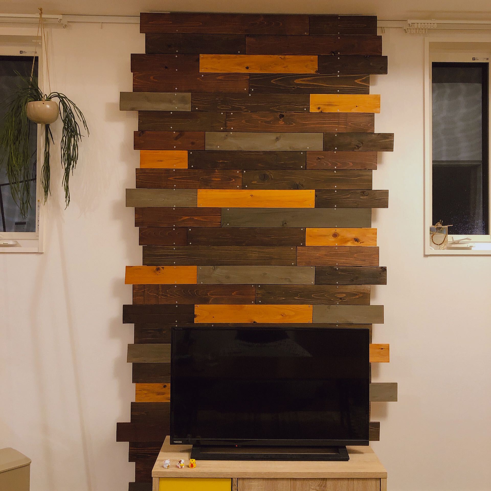長さもあえてバラバラにしたことでグンとおしゃれな壁になりましたね!