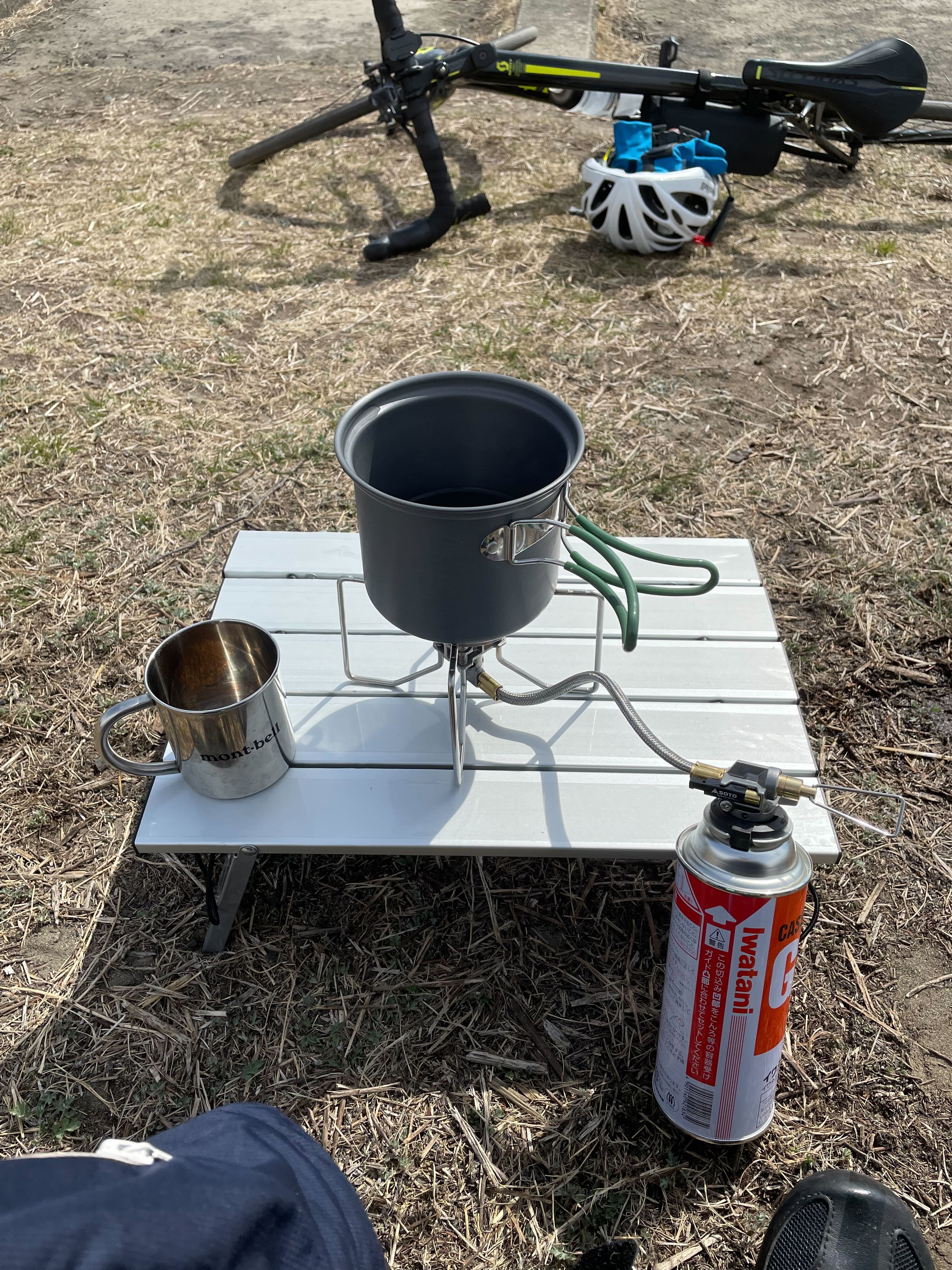 自転車にテーブルとラーメンを括り付けておけば、野点後に野ラーメンを嗜みます。