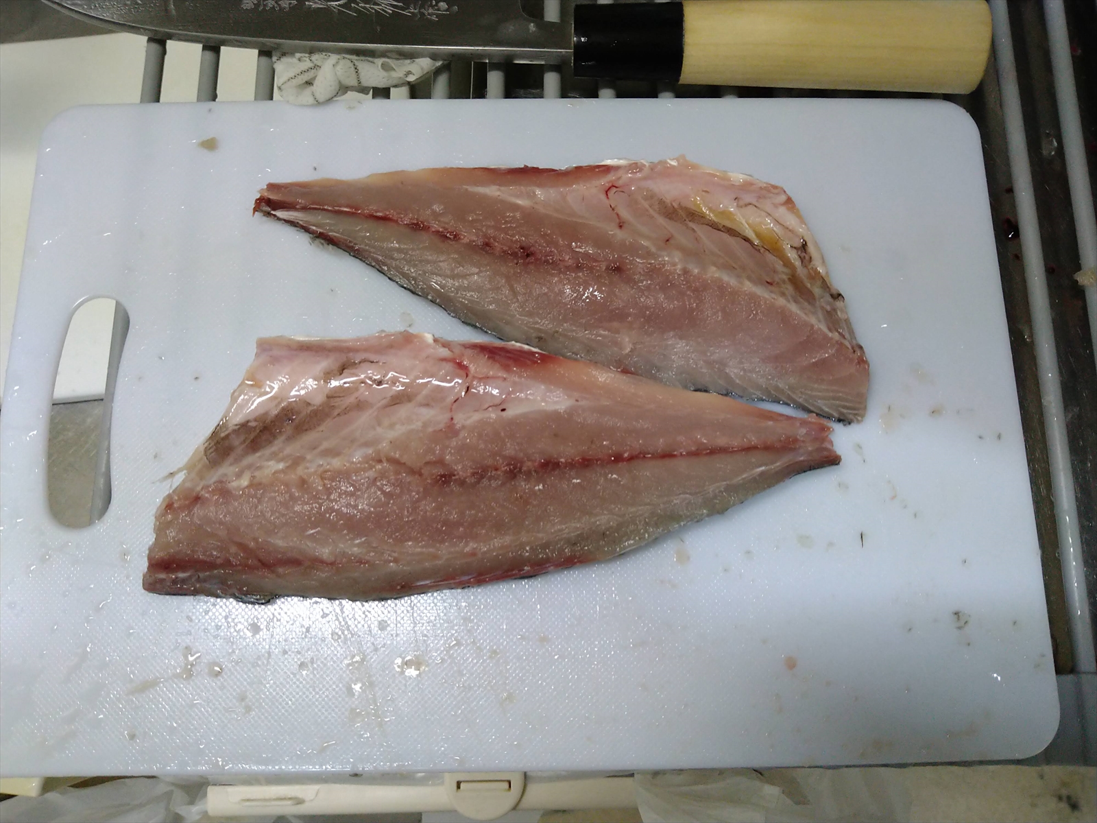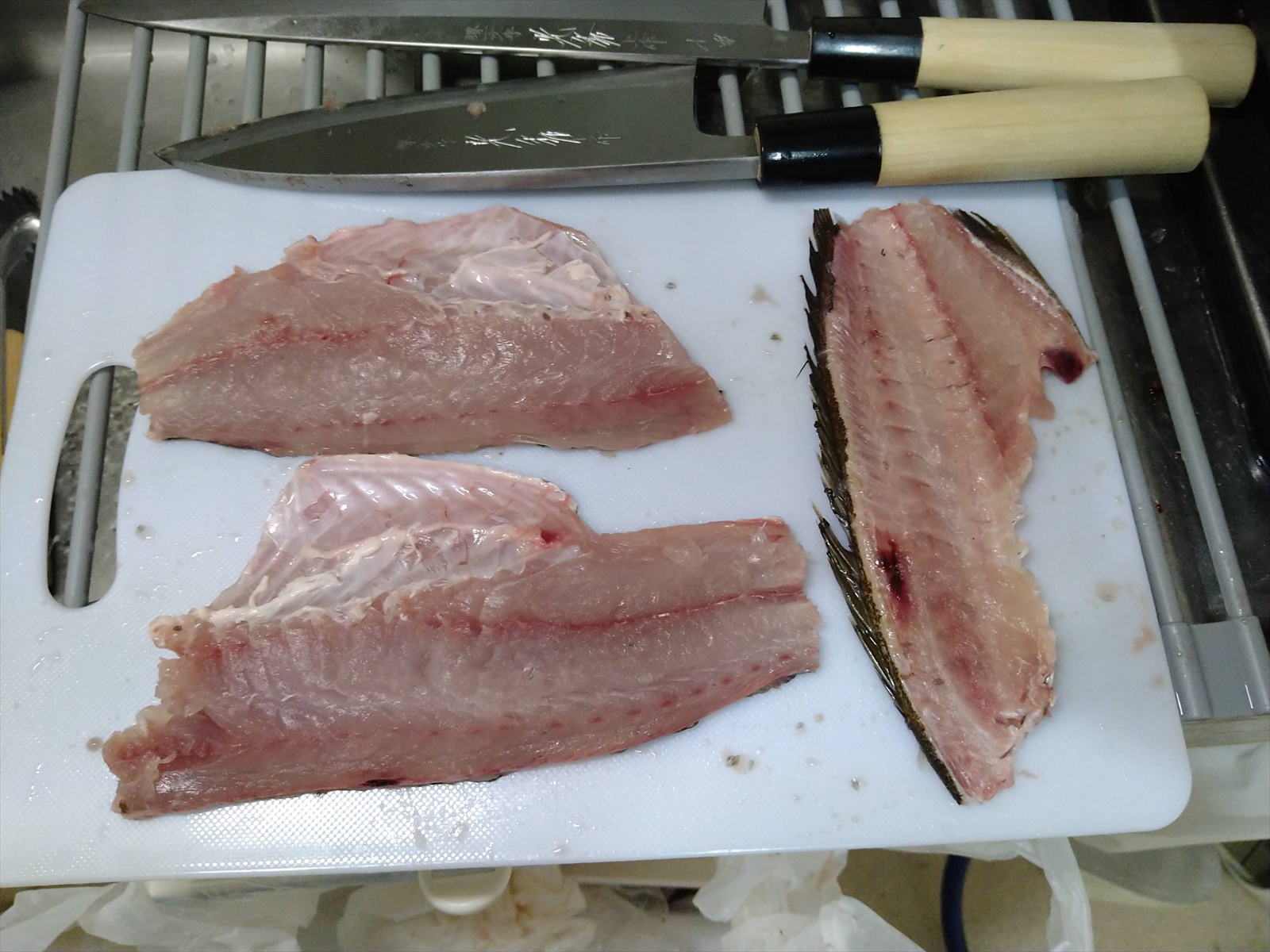 左がアジで右がイサキです。うん、この出刃めちゃくちゃ切れます。過去一の出来栄えです。