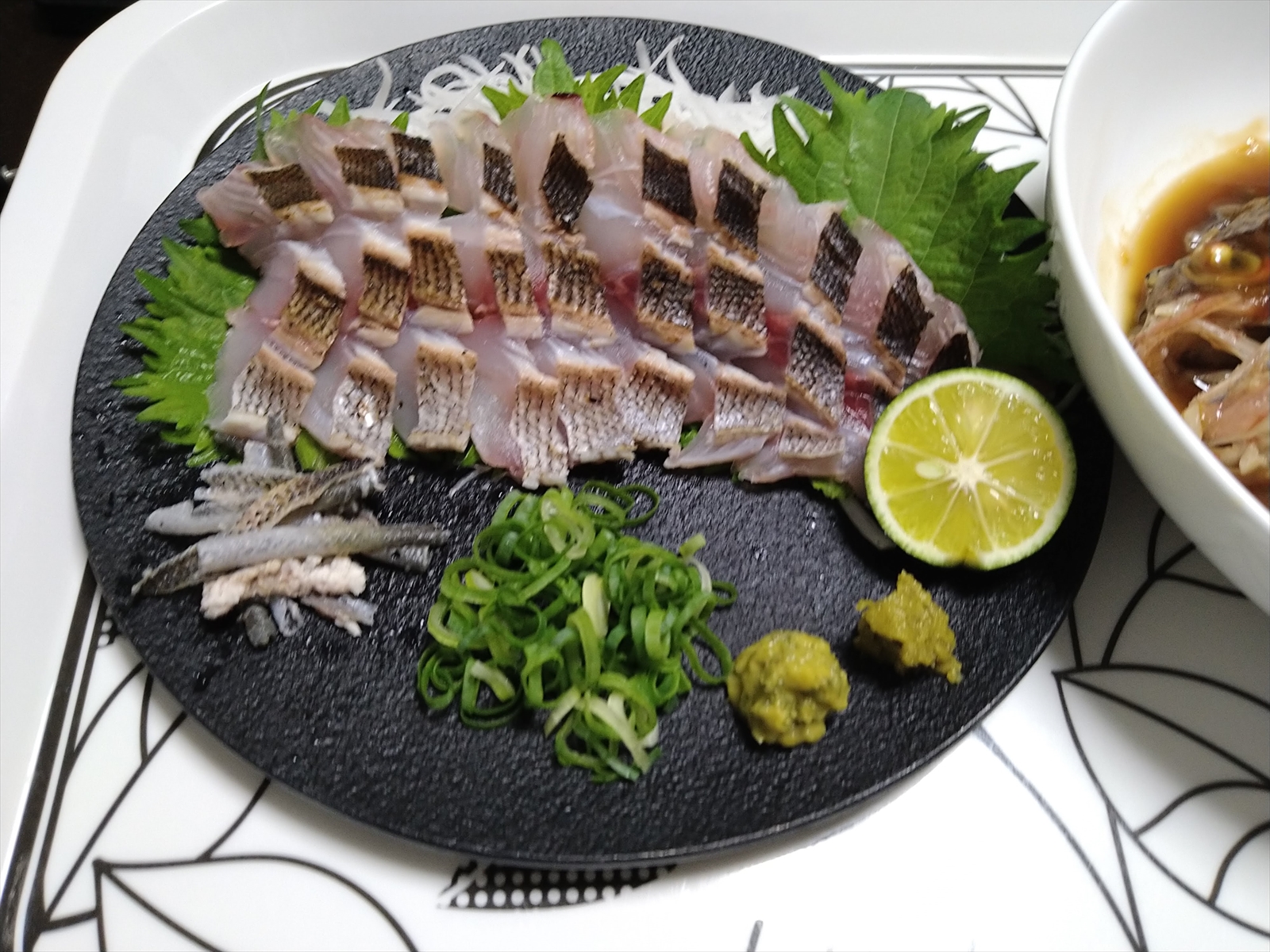 柳の舞と鯵の真子の煮つけ(柳の舞が一番おいしくない時期らしいので、こってりとした味付けで)