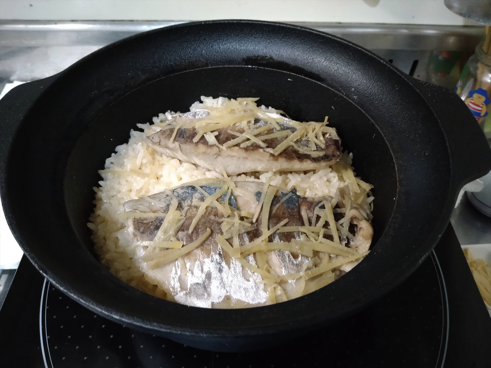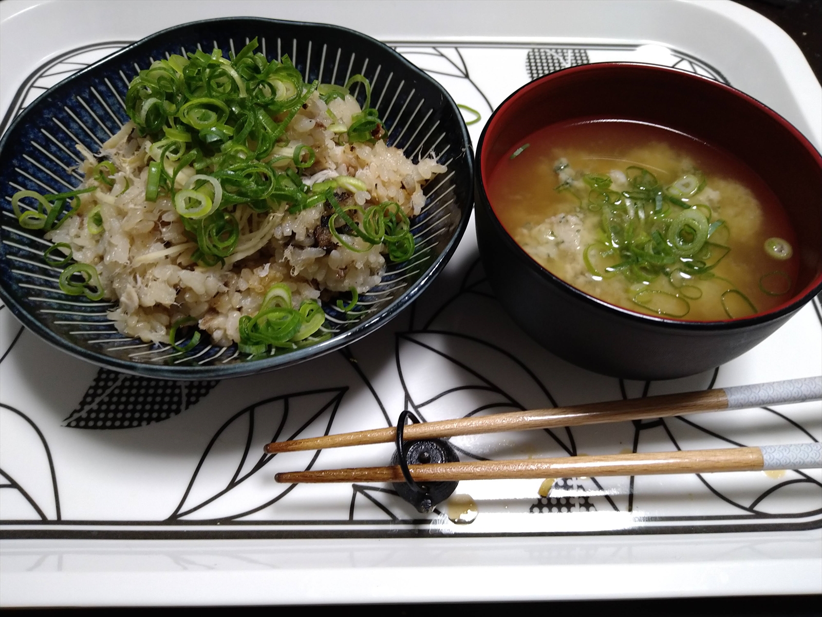 鯵の炊き込ごはん(勢い余って皮を引いちゃったのが残念)とイサキのつみれ汁