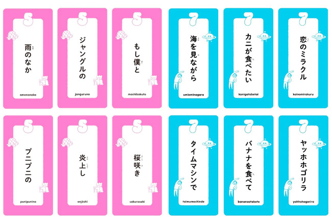 「5音の言葉カード」と「7音の言葉カード」を組み合わせて短歌を作るゲームです。