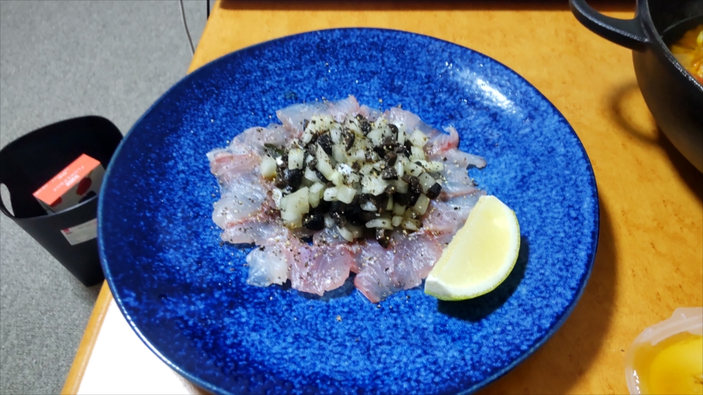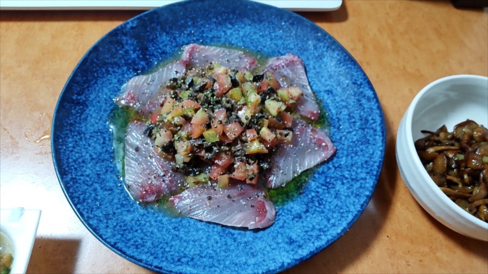 上からチヌ(やったかな?)、ブリのカルパッチョ
