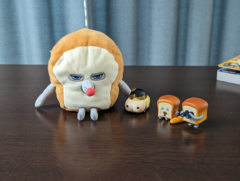 子供が、パンどろぼうのぬいぐるみと、あんぱんまんのぬいぐるみを持ち歩いていますが、パンどろぼうのフォルムが食パンなので、