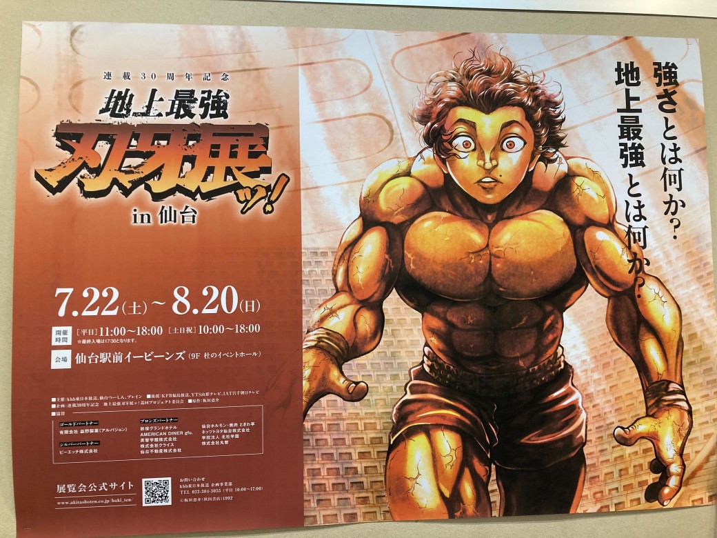 この前のお盆休みに、仙台のほうに帰省していたのですがちょうど仙台で刃牙展が開かれていたので友人と行ってきました。